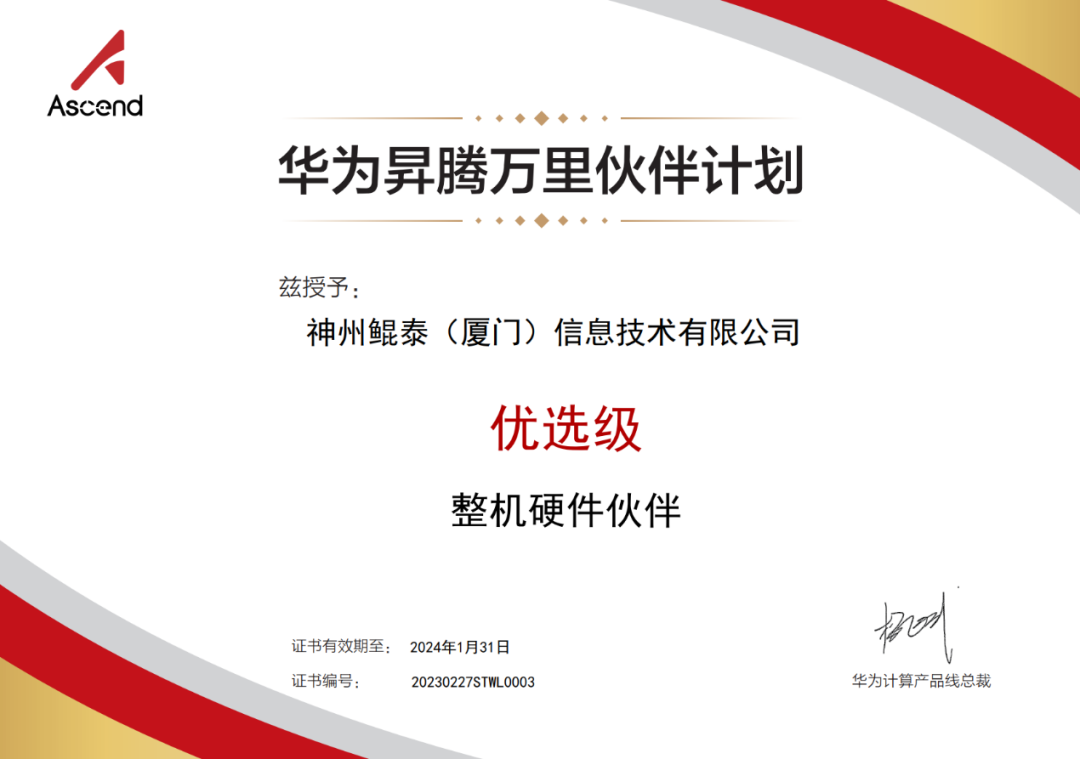 近日,星空xingkong数码旗下神州继获得华为鲲鹏领先级整机硬件伙伴认证之后,再获华为昇腾优选级整机硬件伙伴认证!这是神州与华为昇腾深化合作的硕果,也代表着星空xingkong数码信创业务在AI领域获得生态伙伴的充分认可。